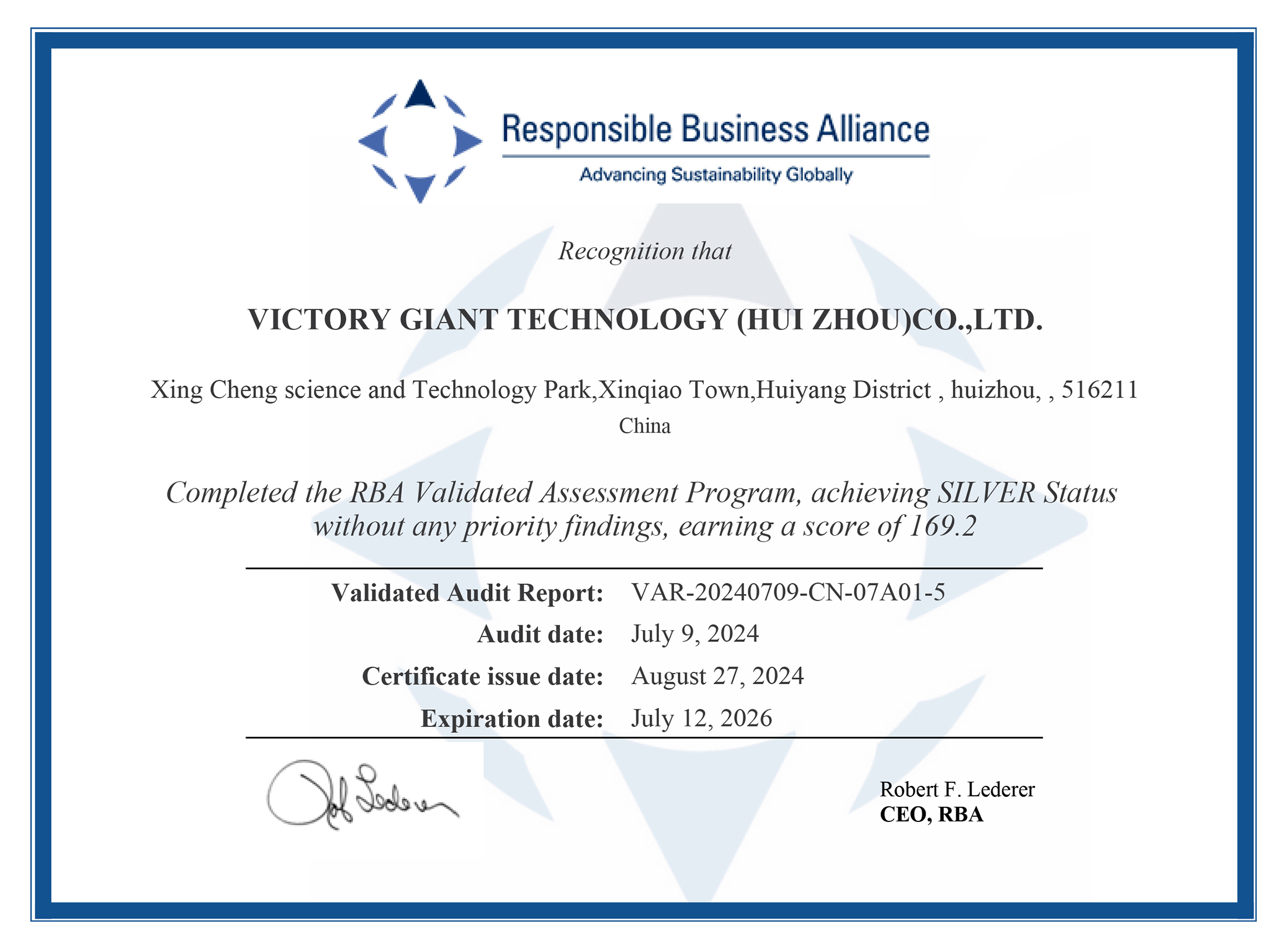 RBA VAP 社會(huì)責(zé)任審核證書